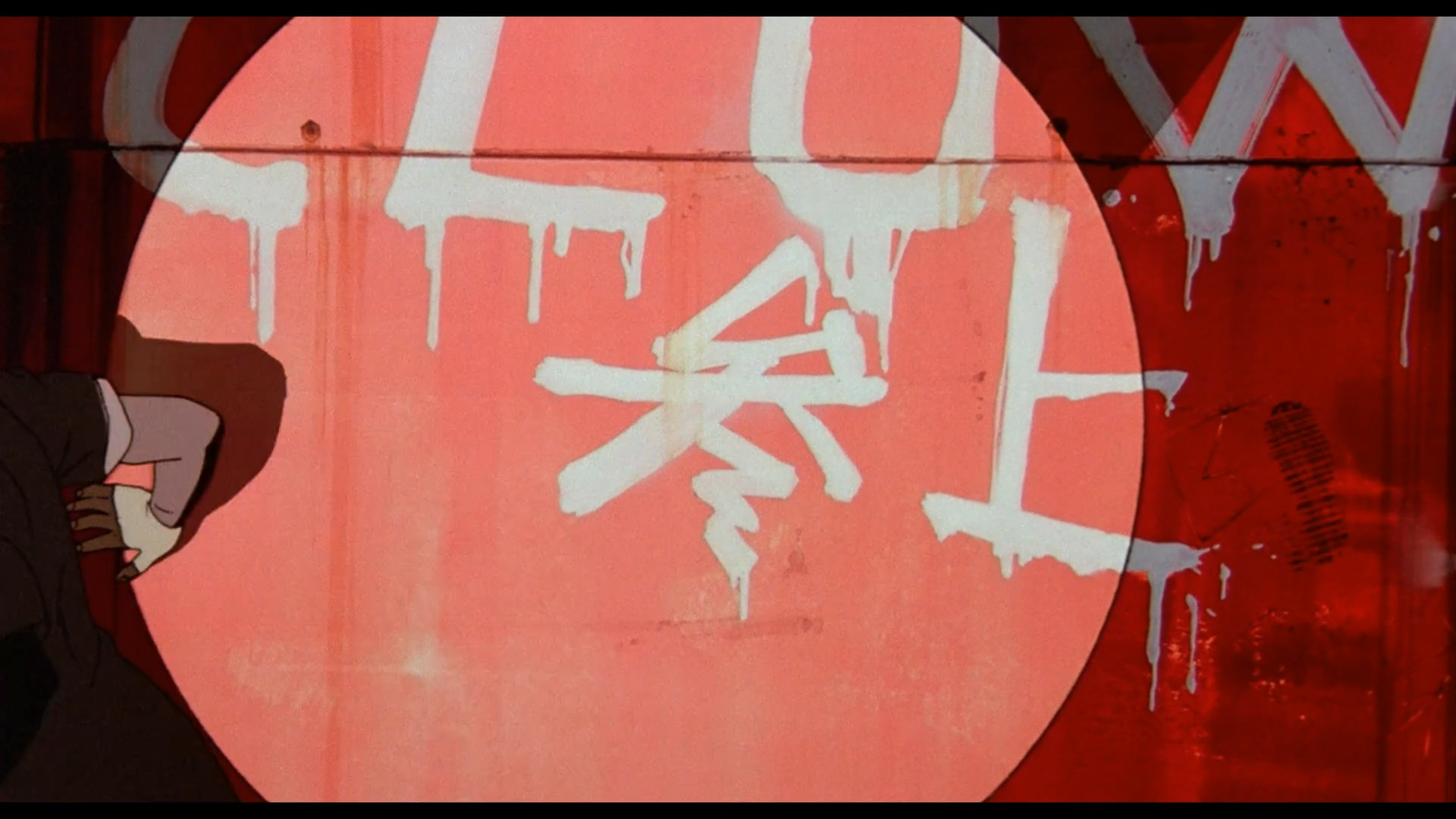 Of course, the main point of praise for this film is the aforementioned astounding visuals, which hold up even today. Akira is an example of the heights the cel animation era could reach–lush, detailed, and textured in a way that modern digital productions have only just begun to match in some ways. The color pages of the Akira manga were actually quite uneven in my opinion, so I was surprised to learn in the laserdisc interview that the color palette of the film was based in part on those spreads. The film version of Neo-Tokyo is beautifully translated into animation–filled with garish neon lights and disheveled urban streets, the backgrounds a treasure trove of screens, wandering people, storefronts, and other minute details. There’s something magical about seeing the crowds and clutter of the setting in the manga portrayed in motion. The cyberpunk influences of films like Blade Runner can clearly be felt on the production, but Otomo coming from an actual Asian country means he merely heightens and exaggerates the existing metropolis of 1980’s Tokyo, lending the cyberpunk city an authenticity and nuance not found in Blade Runner’s orientalist stereotypes.
